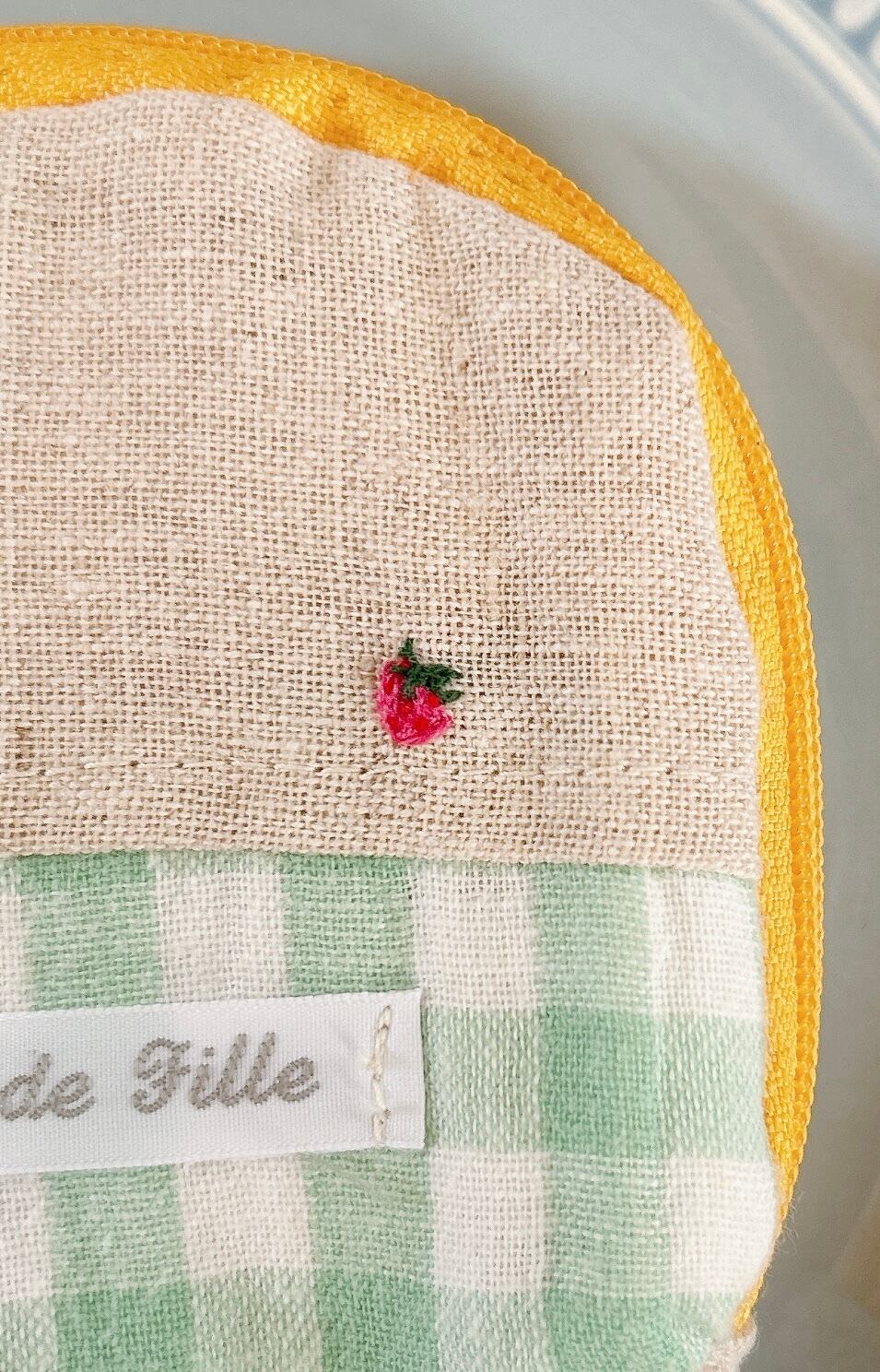 裏面には小さいいちごが刺繍されています