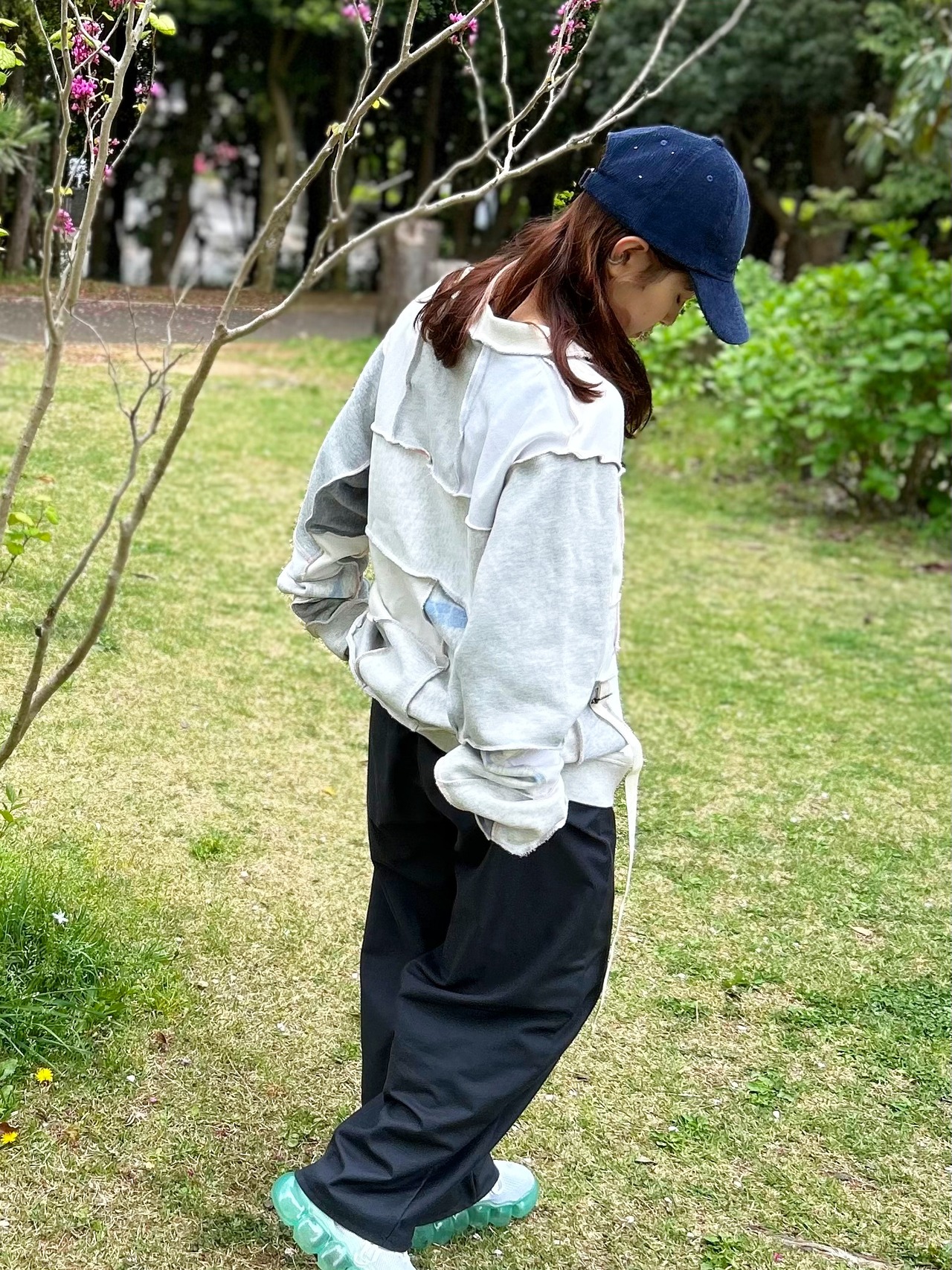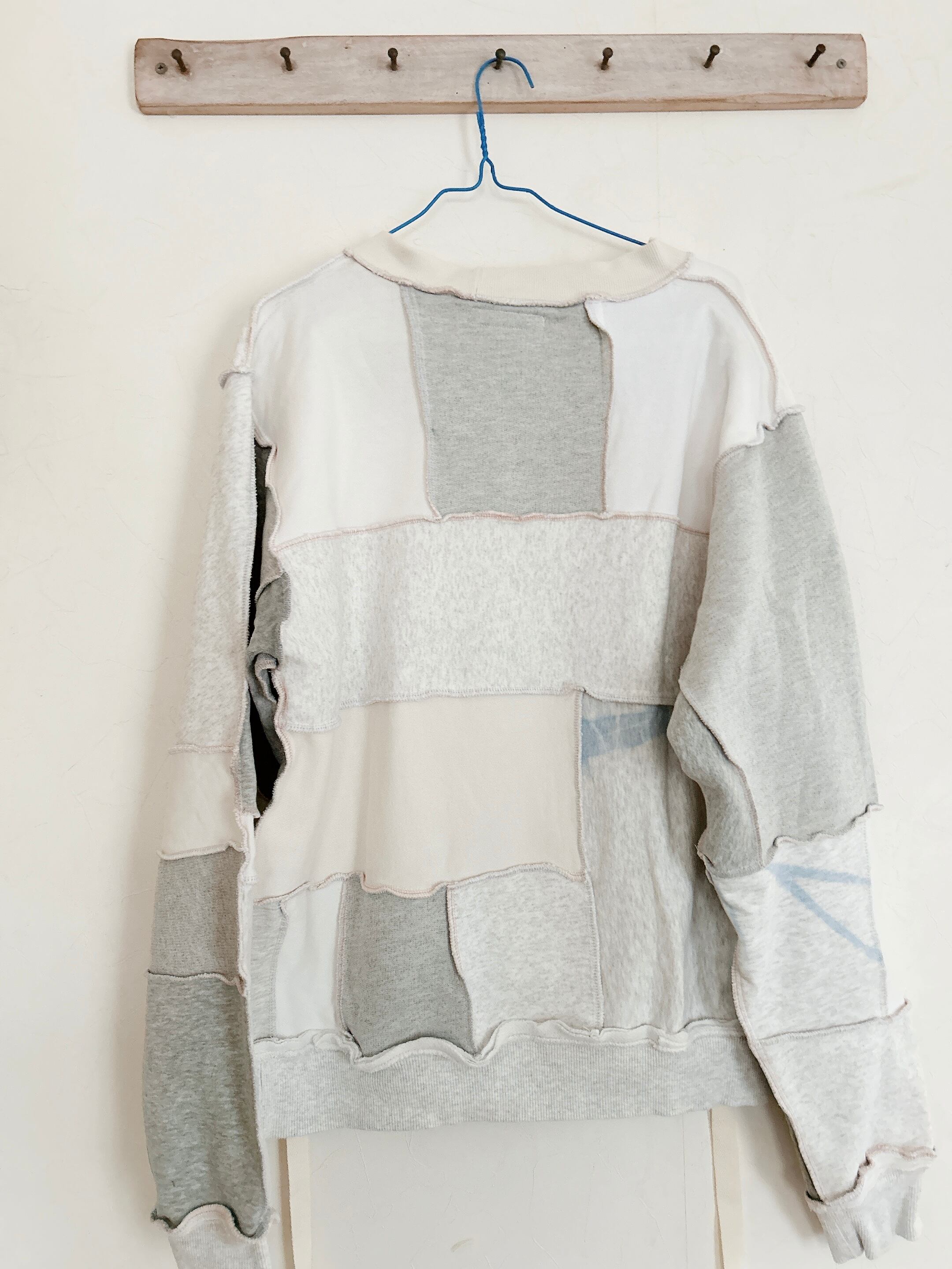 古着をつなぎ合わせたユニセックスのトレーナー