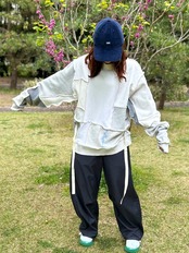 グレーをベースに生地を組み合わせているのでコーディネートに取り入れやすいアイテムです