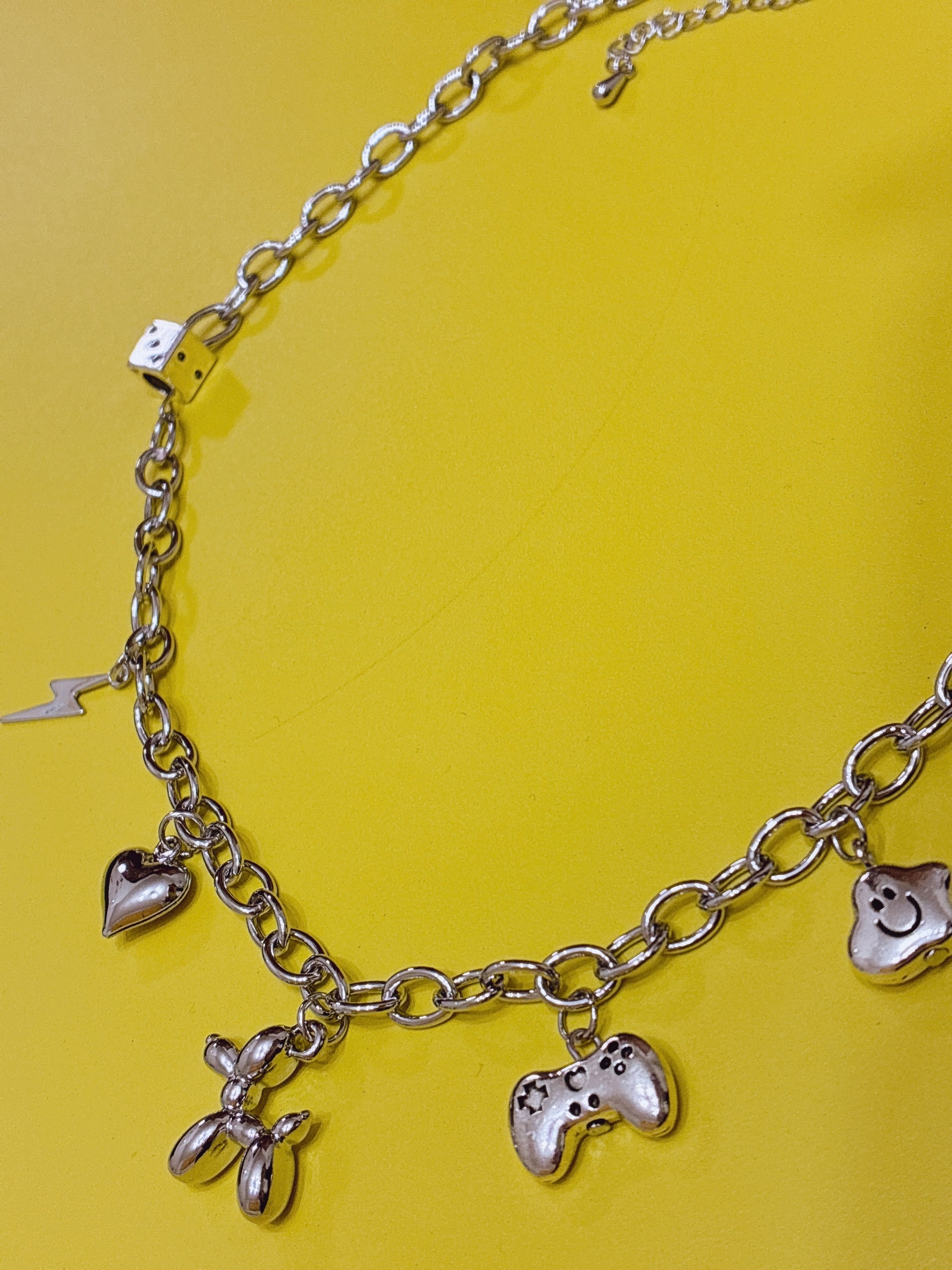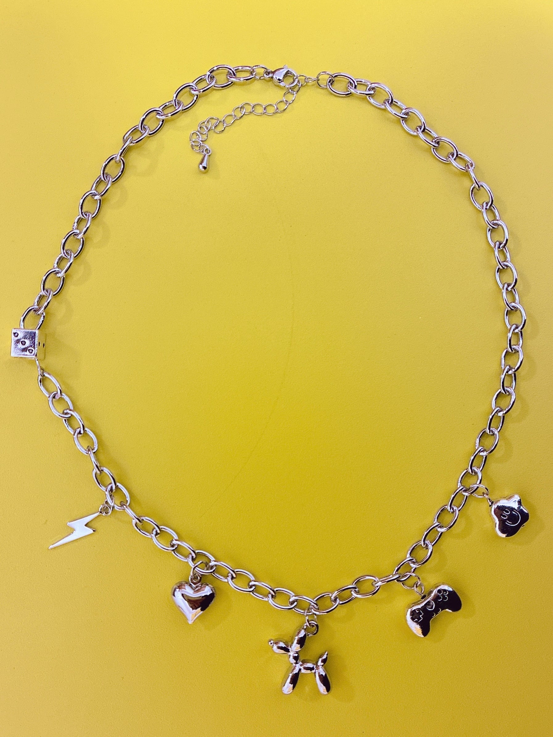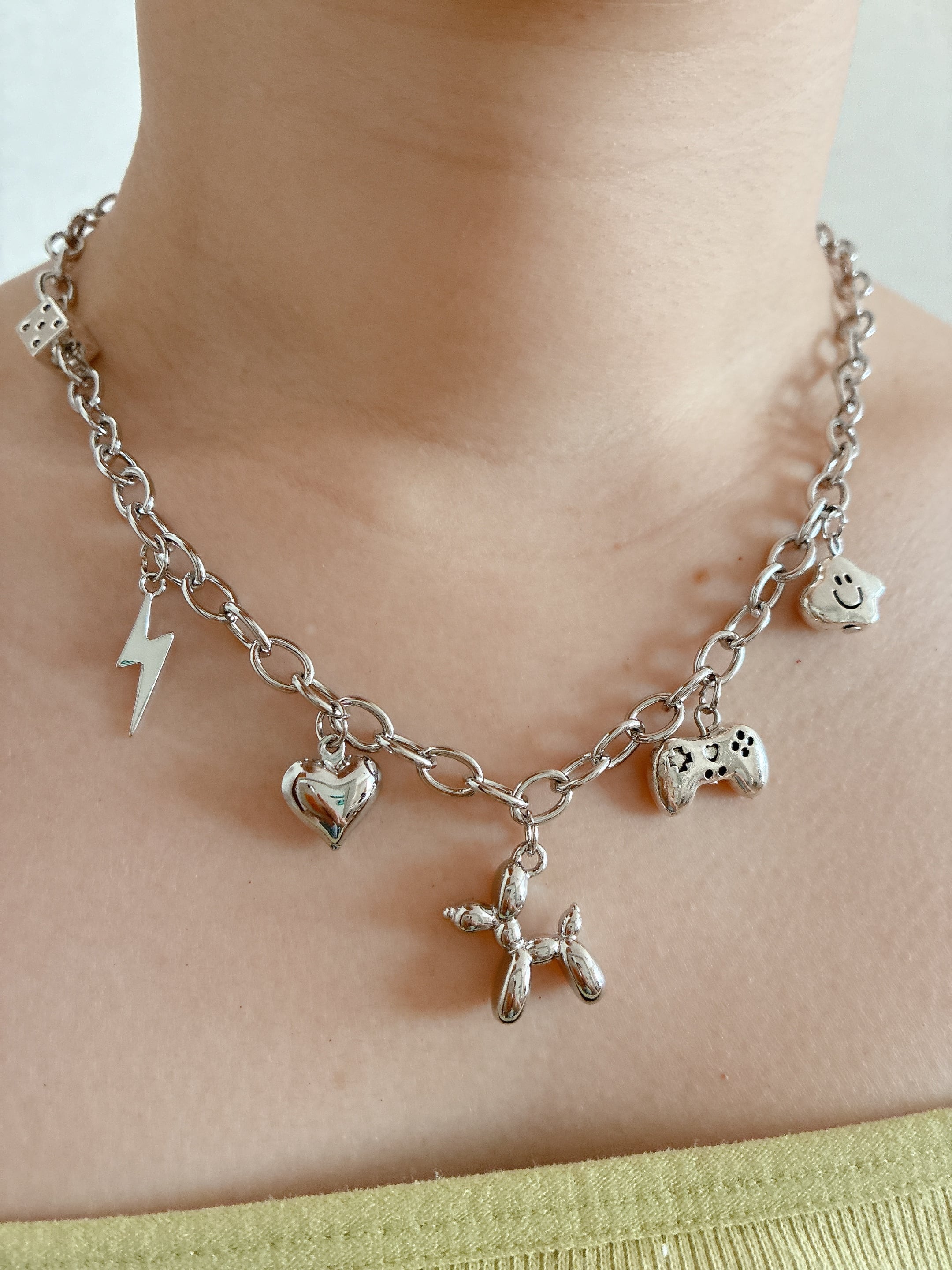 一つひとつは可愛いチャームもチェーンネックレスと組み合わせるとクールにも