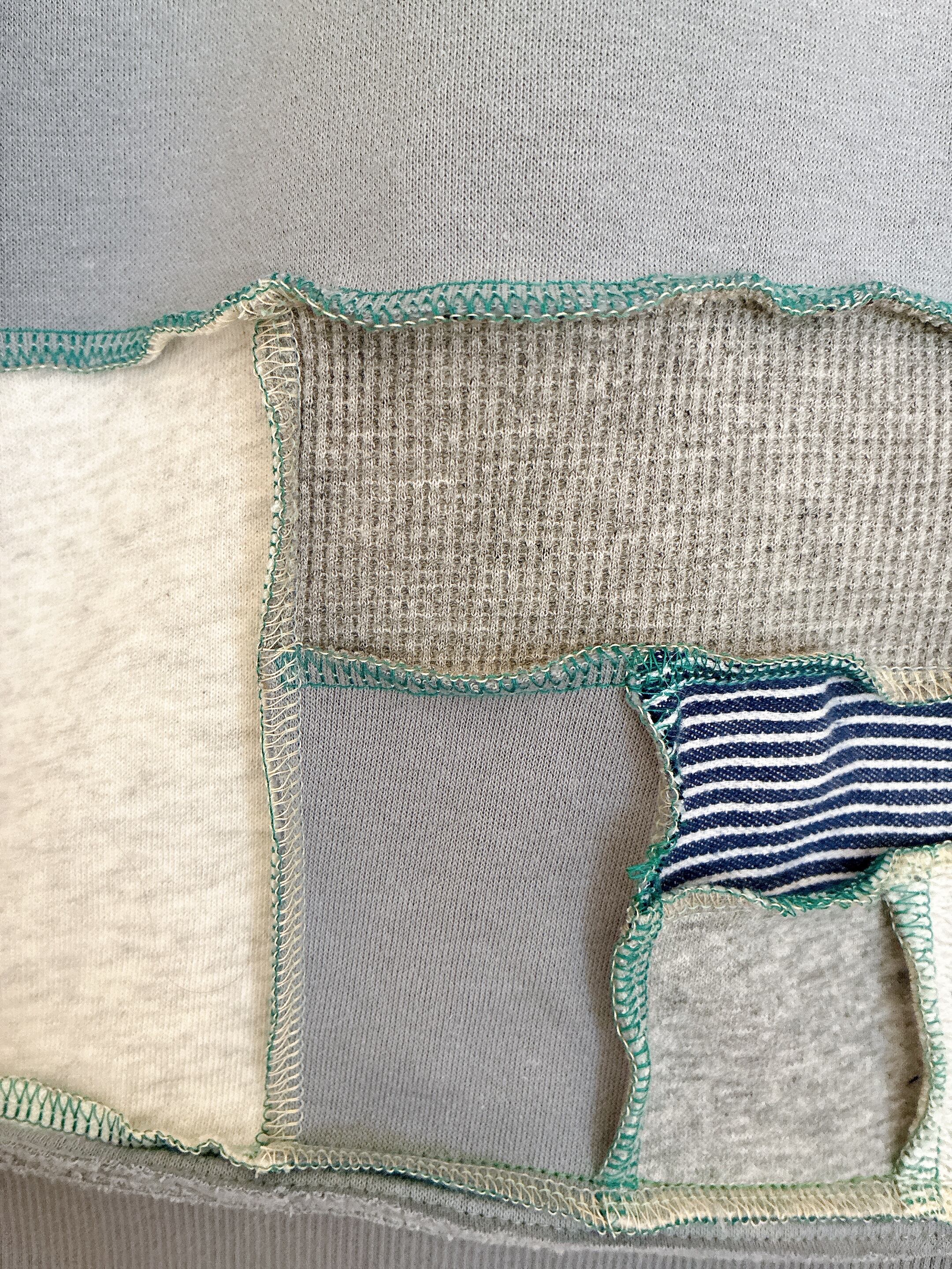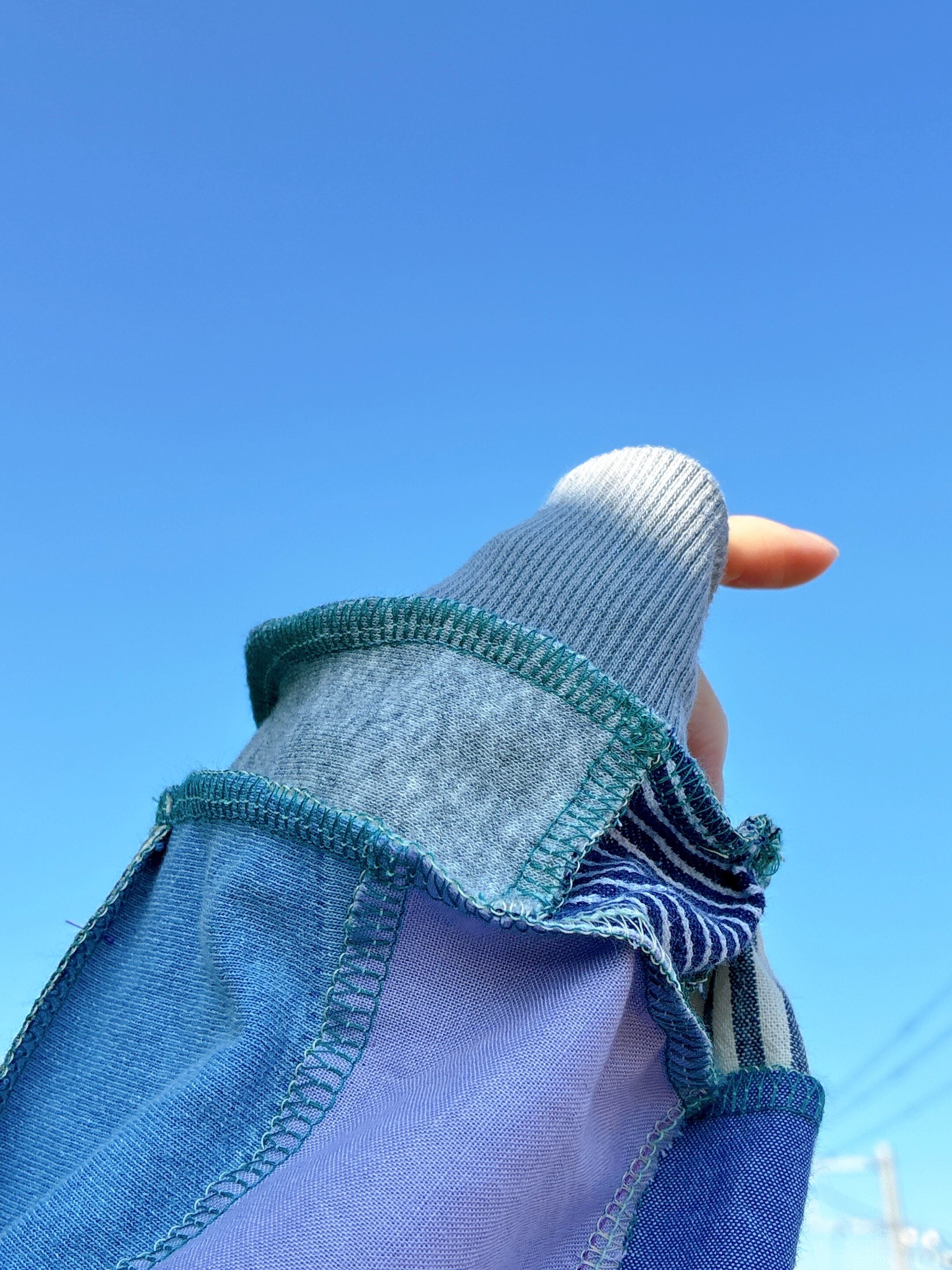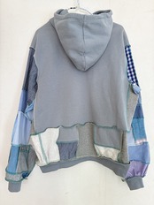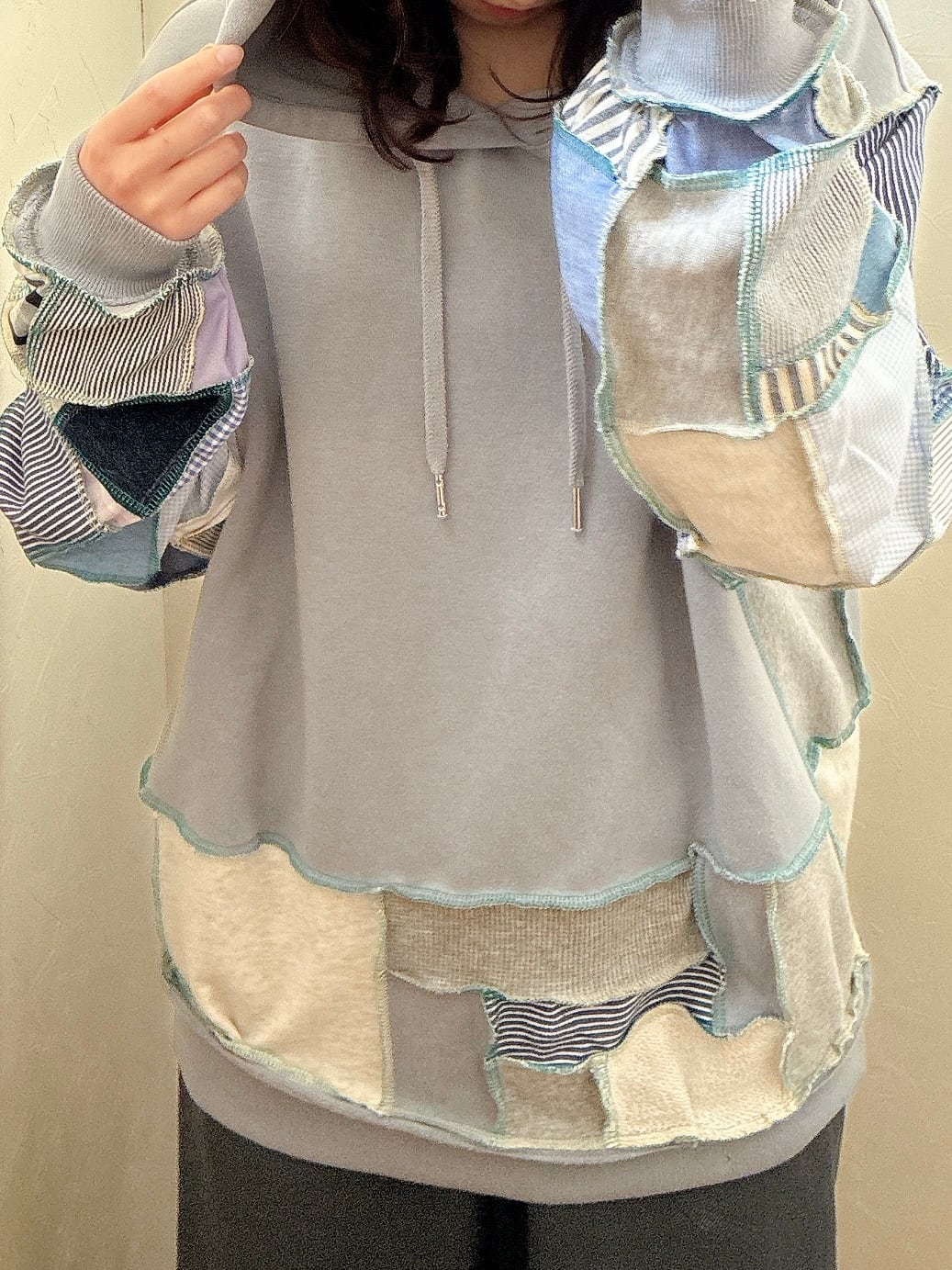 ブルーグレーのパーカー×寒色系の生地で作られた作品